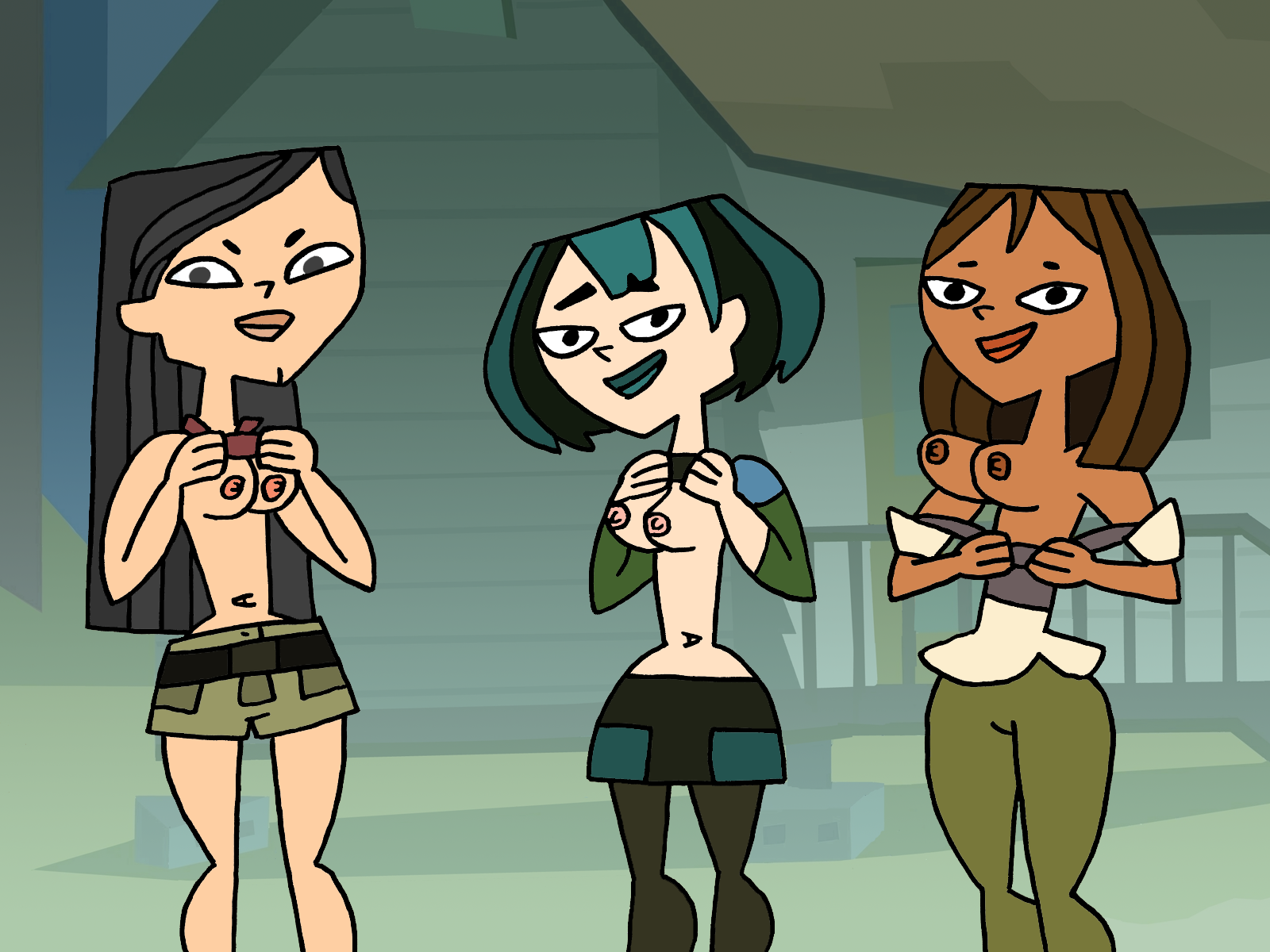 Here the uncensored drawing, human ponies girls showing their top off.